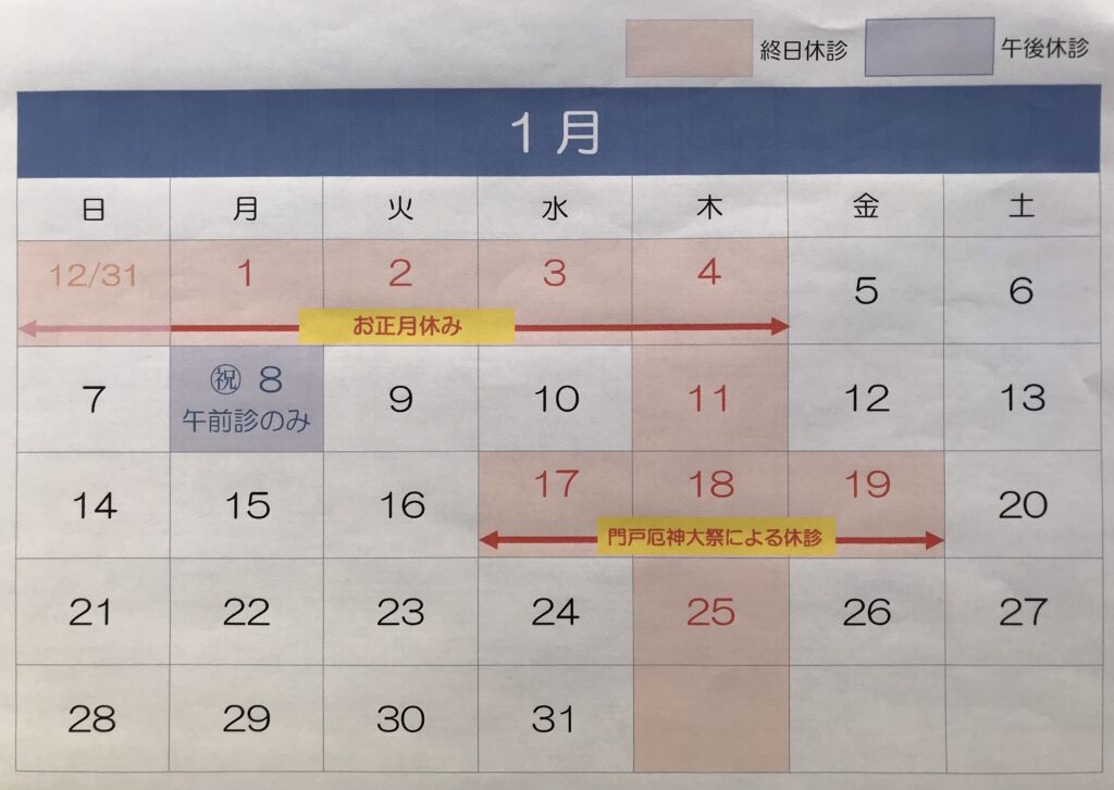 門戸厄神大祭による広範囲な交通規制のため、17日〜19日を臨時休診(3連休)とさせていただきます。※8日(月)は、祝日のため午前診のみで午後休診です。※日曜日は、午前午... -