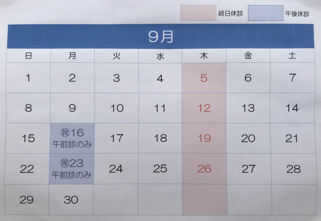 臨時休診の予定はございません。※16日(祝月)、23日(祝月)は午前診察のみ午後休診です。【9月の休診日】5日,12日,16日午後,19日,23日午後、26日※日曜日は、午前午後... -